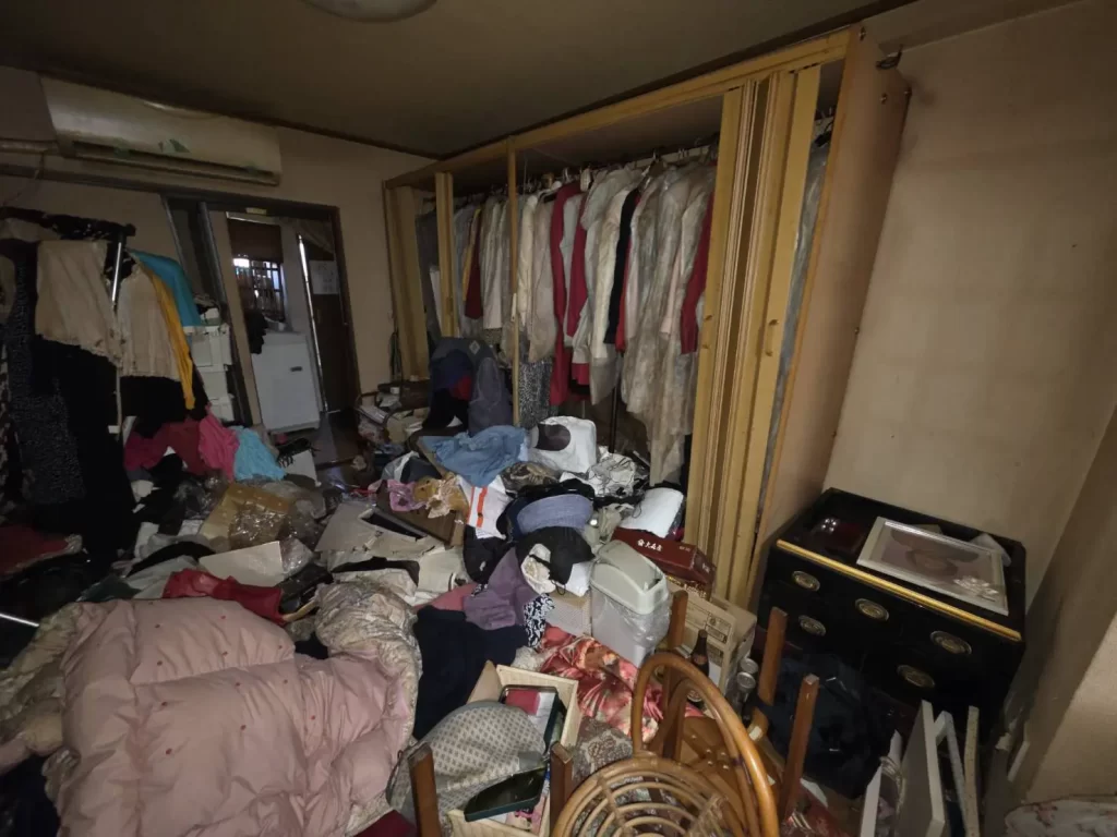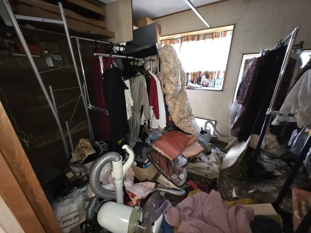 長期間空き家だったため、室内は衣類や生活雑貨で溢れかえり、床が見えない状態でした。さらにネズミによる被害もあり、衛生状態も悪い中での作業となりました。
