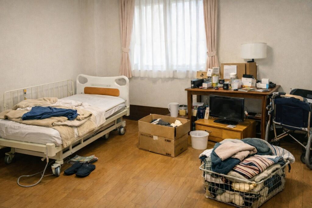 1. 状況:生活用品が残ったままの居室