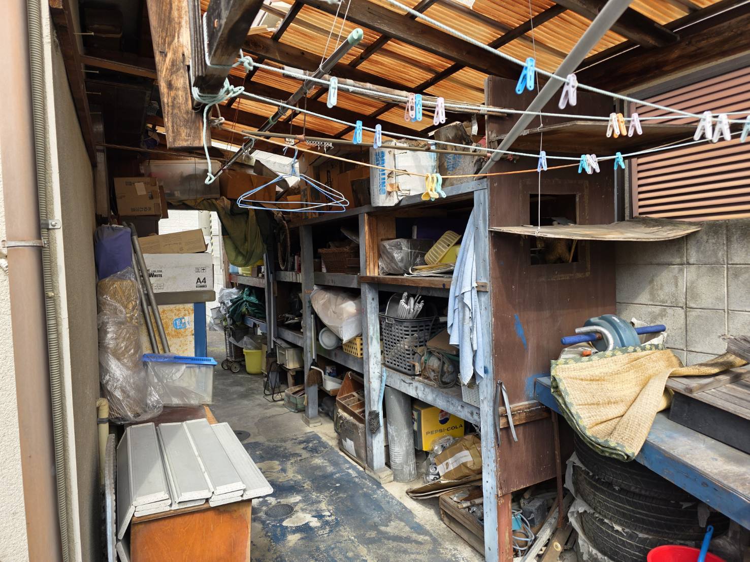 長年蓄積された日用品、雑貨、大工道具や工具類が棚いっぱいに保管されている状態でした。また、棚自体も大型で、撤去には解体作業が必要な現場でした。
